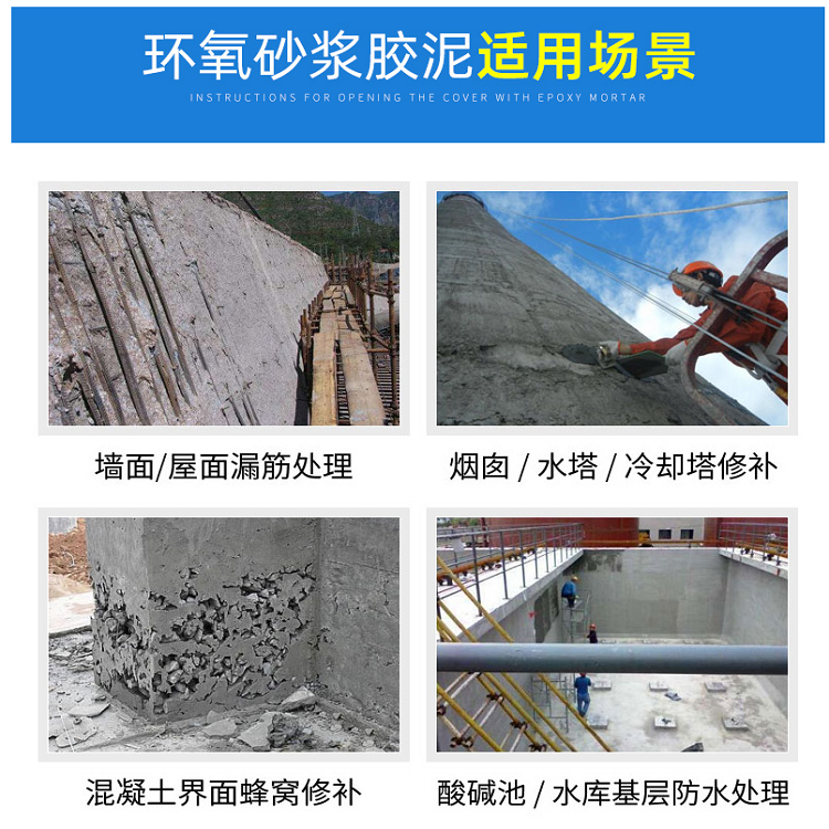 1、具有抗?jié)B、抗凍、耐鹽、耐堿、耐弱酸腐蝕的性能,并與多種材料的粘結(jié)力很強(qiáng)。2、可在潮濕基材表面施工,不需干燥,可在潮濕環(huán)境或水下硬化。3、操作施工方便,與普通水泥砂漿施工相仿,容易清洗,用水就可以清洗。